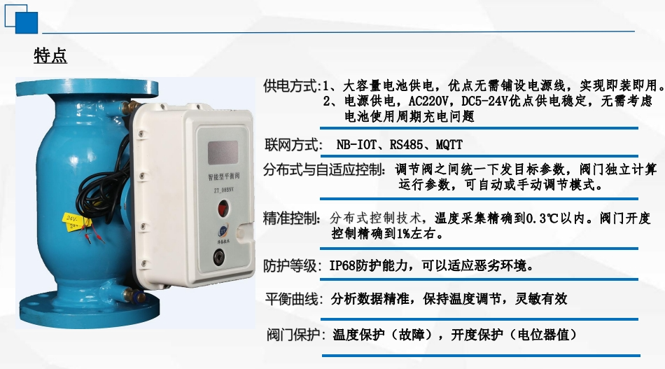 ?、庵悄茈妱诱{(diào)節(jié)閥具備24v交直流供電,支持RS485通訊和模擬量信號,同時支持低功耗藍牙組網(wǎng)無線通訊和調(diào)試功能,是熱力站內(nèi)精調(diào)節(jié)控制器,支持兩路壓力、兩路溫度監(jiān)測,支持自動溫差、溫度調(diào)節(jié)功能,具備承受較大的壓力差,工作時振動較小,調(diào)節(jié)性能好,使用壽命長特性,廣泛應用與城市集中供熱自動控制系統(tǒng)中,是智慧熱力站整體解決方案重要組成部分。通過與云平臺、AI算法調(diào)控、嵌入式技術等深度融合,實現(xiàn)對熱力站一次、二次管網(wǎng)熱量、流量及溫度高效智能化調(diào)控。